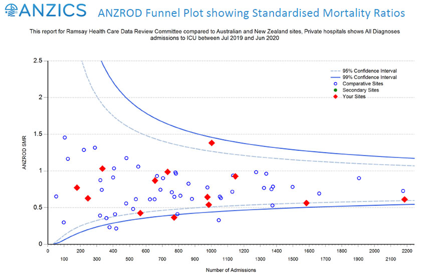 The Australian and New Zealand Intensive Care Society (ANZICS) maintains a series of clinical registries that are designed to track outcomes of patients who are admitted into intensive care units. Ramsay Health Care participates in two of these registries: the ANZICS Adult Patient Database and the ANZICS Critical Care Resource survey.