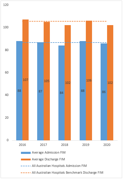 During your stay, we use a Functional Independence Measure – or FIM – to help track your recovery. This score is based on an assessment by a trained member of your rehabilitation team and shows how well you’re managing everyday tasks and activities. It also looks at areas like social interaction and emotional wellbeing. The higher your score when you leave, the more progress you’ve made. We use the FIM with every inpatient and compare our results with hospitals across Australia, so we can keep improving the care we provide.